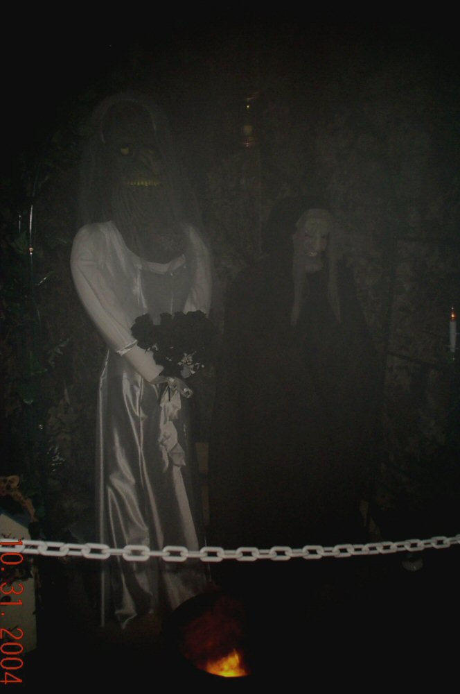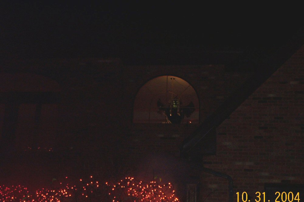 Witch watches from window arch in front.