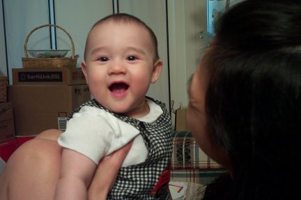 Big, happy smile whenever he's with his Mommy. |