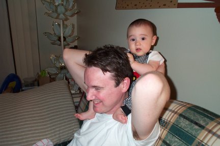 Daddy makes a good place to watch the world go by... |