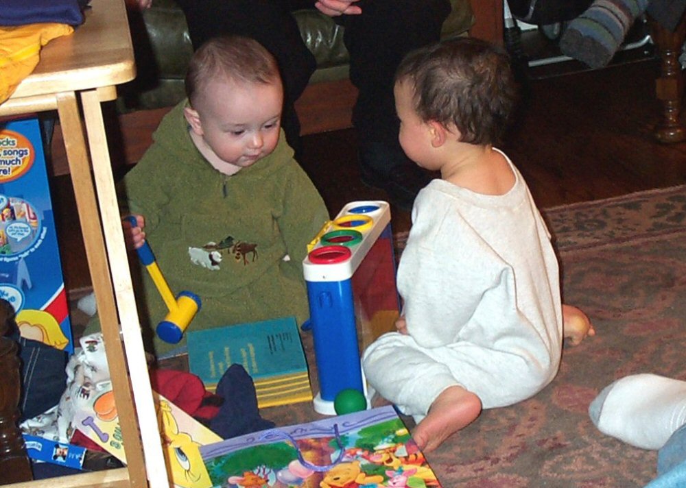 Ryan enjoys playing with his cousin's presents!